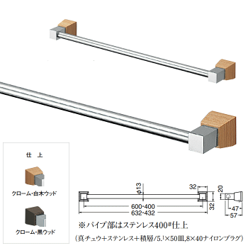 ウッドmono タオル掛けの詳細 ■600サイズ 幅632×奥行き57mm ■400サイズ 幅432×奥行き57mm ■材質 真鍮+積層+ステンレス ■仕上げ(クローム・白木ウッド/クローム・黒ウッド) 石膏ボード壁面取り付けOKのシェルフ&フック 棚受け・ブラケット・フック ホテルや高級クラブ等に採用されている特選ペーパーホルダー複数注文・施工先直送にも対応、お気軽にお問い合わせください。