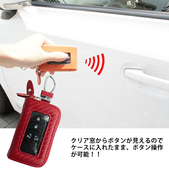 カーボン調 スマートキーケース クリア窓付きダブルファスナータイプ (全3色)スマートキーカバー トヨタ ホンダ 日産 スズキ ダイハツ マツダ スバル 三菱 キーケース スマートキー かわいい レディース おしゃれ メンズ プリウス プレゼント 操作 ダブル