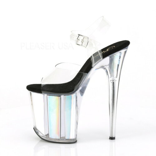 PLEASER【取り寄せ】プリーザー・フラミンゴホログラム厚底クリアサンダル/品番:FLAMINGO-808HGI/FLAM808HGI/20cmヒール/ダンスシューズ/ダンス/衣装/ポールダンス/キャバ嬢/靴/ハイヒール/ピンヒール/シルバー/銀/クリア/透明