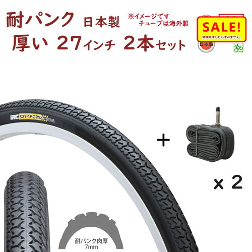 5倍 26日早朝迄 自転車タイヤ 27インチ 2本 パンクしにくい IRC 自転車タイヤ チューブ 各2本 シティポップス 耐パンク 80型