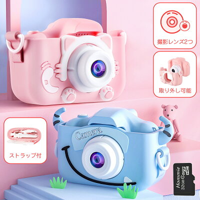 商品仕様 画素:2000万 素材:滑らかなシリコン カメラ本体サイズ:86 × 57 × 57mm ケース付きサイズ:95 × 65 × 57mm スクリーン:2.0インチIPSカラースクリーン フォーカス範囲:>=0.5m 光学ズーム:3倍デジタルズーム(上下ボタン長押しで変化可能) ビデオ:JPEG(720p~1080p);VGA(30fs) 写真:JPG(5328×4000) 連写機能:あり マイク:内蔵あり 写真サイズ:2M~20M選択可 バッテリ:5V/600mAh MicroSDカード:32GBのが付属あり、64GBまで拡張可 梱包内容 1× デジタルカメラ本体 1× カメラケース(ピンクはネコ/ブルーはモンスター) 1× 32GBのSDカード 1× usb充電ケーブル 1× ストラップ 1× ステッカー 1× 取扱説明書(日本語含め) ご注意 ①カメラを充電して、SDカードを差し込んでから使用してください。